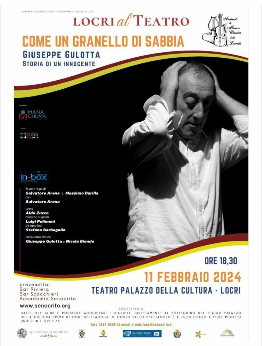 Si tratta dello spettacolo teatrale “Come un granello di sabbia – Giuseppe Gulotta, storia di un innocente” scritto e diretto da Salvatore Arena e Massimo Barilla ed interpretato proprio da Arena.