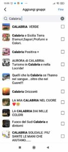 Come primo gruppo abbiamo “Amore di Calabria” che conta oltre 167.000 membri. Il gruppo spazia in vari settori, con un particolare punto di riguardo alle specialità culinarie della nostra Regione, all’arte, alla musica, ma anche serbando un rapporto socio-comunicativo, d’interfaccio e fratellanza, riuscendo pur sempre a conservare un ruolo di primo piano nel riporto della bellezza dei nostri luoghi.