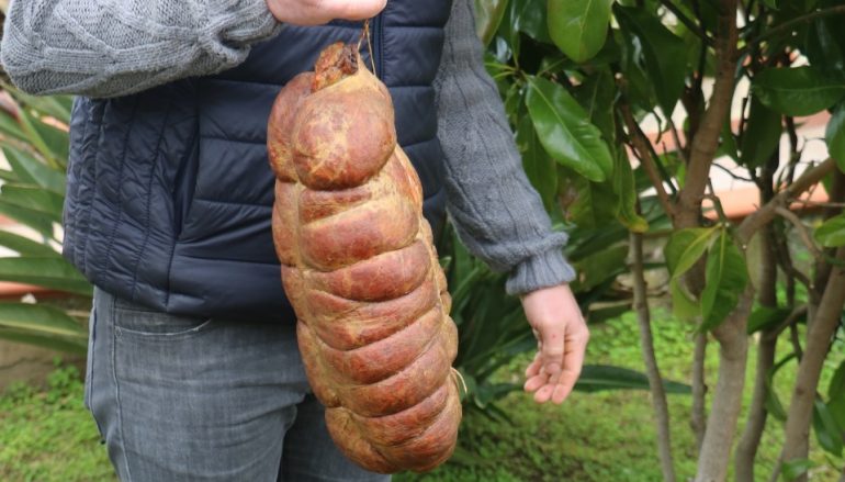 Il giovane imprenditore agricolo Michele Dotro si è occupato di realizzare una ‘nduja del peso di circa 8 chili, ad orba unica e pertanto non cucita. Il prodotto ha avuto una maturazione di oltre 12 mesi ed è stato affumicato in modo naturale.