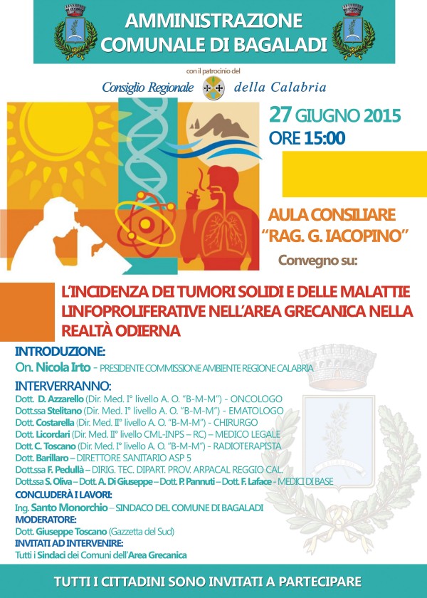 E’ in programma un importantissimo convegno presso l’aula consiliare G. Iacopino di Bagaladi sulla “incidenza dei tumori solidi e delle…