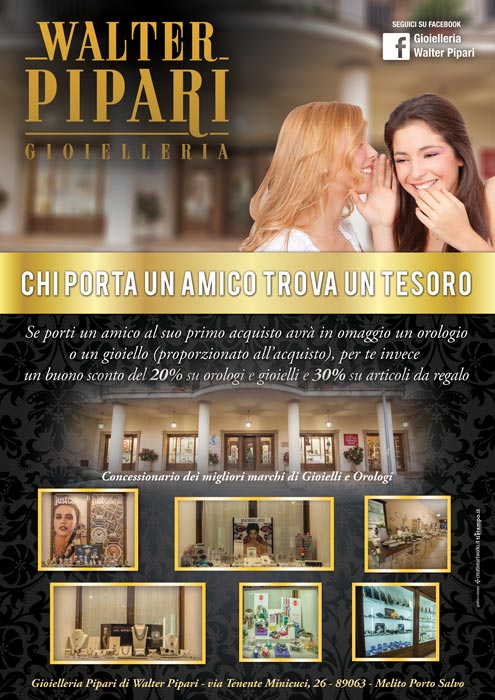 PROMO: Se porti un amico al suo primo acquisto avrà in omaggio un orologio o un gioiello, per te invece un buono sconto del 20 % su orologi e gioielli, il 30 % su articoli da regalo