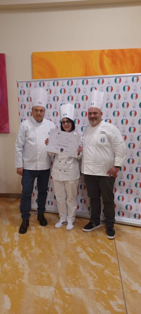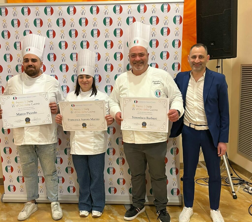 Ecco cinque chef Calabresi premiati dal Presidente Simone Falcini e dal vice presidente Daniele Gorini. Si tratta di due riconferme, avendole già ottenute nel 2023:lo Chef Barbieri Simonluca e la woman Chef Francesca Marino (già medaglia d’oro ai campionati italiani Aic 2023). A loro si aggiungono la Woman chef Laura Mauro, lo chef Pasquale Virardi e lo chef di adozione Calabrese, Marco Piccolo.