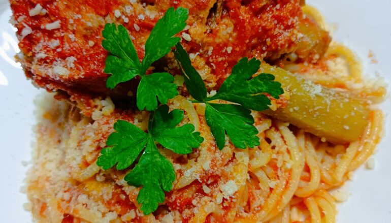 Sistemare i carciofi ripieni in una padella dai bordi alti, mettere l’olio, far soffriggere la cipolla, aggiungere la passata, versare 1/2 bicchiere d’acqua, il sale e far cuocere a fuoco medio/basso, se necessario aggiungere altra acqua. Una volta morbidi, i carciofi alla calabrese sono pronti. Con il sugo si può condire la pasta.