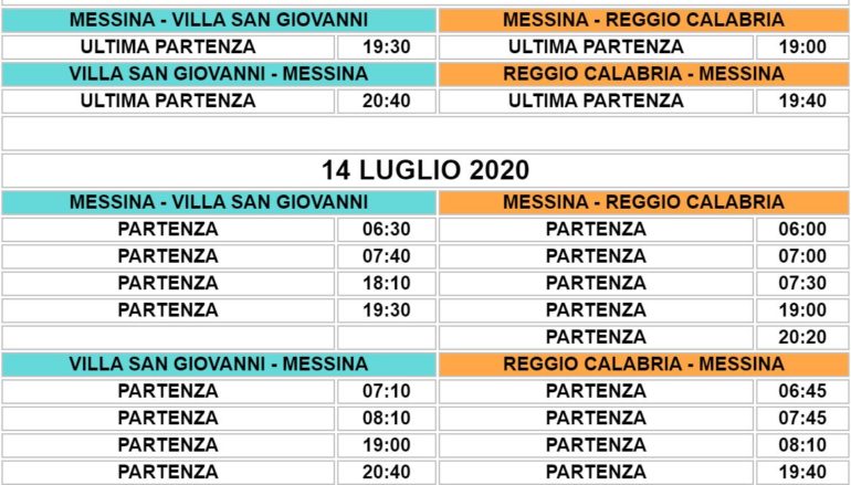 Questi, invece, gli orari tradizionali delle corse sulla tratta Messina-Reggio Calabria A/R:
