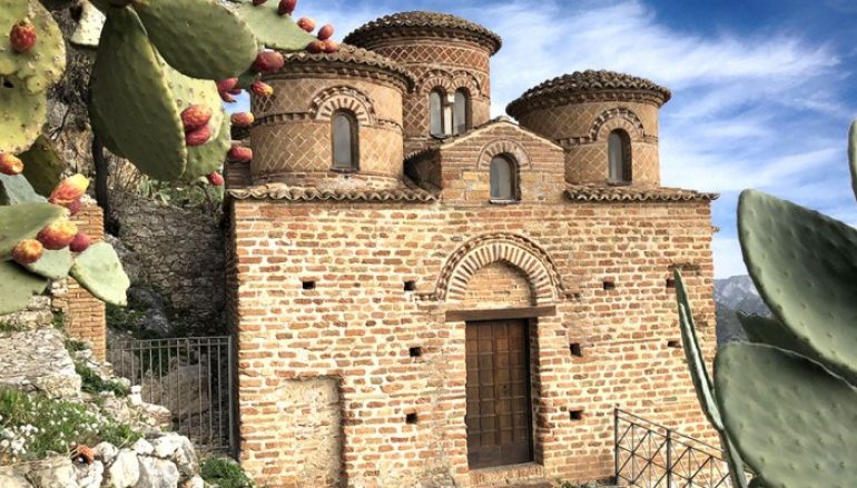 La Cattolica ha conservato il nome originale che vuol dire “universale”, con tre absidi e cinque cupolette dai tamburi cilindrici, era il centro liturgico di un cenobio di eremiti basiliani. Tipicamente bizantina è la sua forma a croce greca inscritta in un quadrato; determinata all’interno da quattro colonne di differenti marmi e con capitelli rovesciati. Nelle tre absidi vi sono ancora le tracce di affreschi sbiaditi, appartenenti a età diverse, e scoperti nel 1927 da Paolo Orsi e in seguito fatti restaurare. L’esterno della Cattolica è interamente ricoperto in mattoni e, a causa della natura piuttosto accidentata del luogo, manca la facciata.