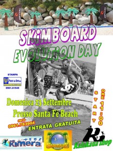 Grazie alla intraprendenza dell’associazione Asd Kimera, sarà possibile imparare a surfare anche per i più piccoli, infatti in assoluta sicurezza grazie alla nuova piscina (un mega tappeto di 9 metri chiamato Banzai Skim Board) che verrà montata in spiaggia, sotto la guida di istruttori qualificati tutti i visitatori potranno cimentarsi in un contesto easy e divertente, con il più facile degli Board Sports ovvero lo “Skimboard”.