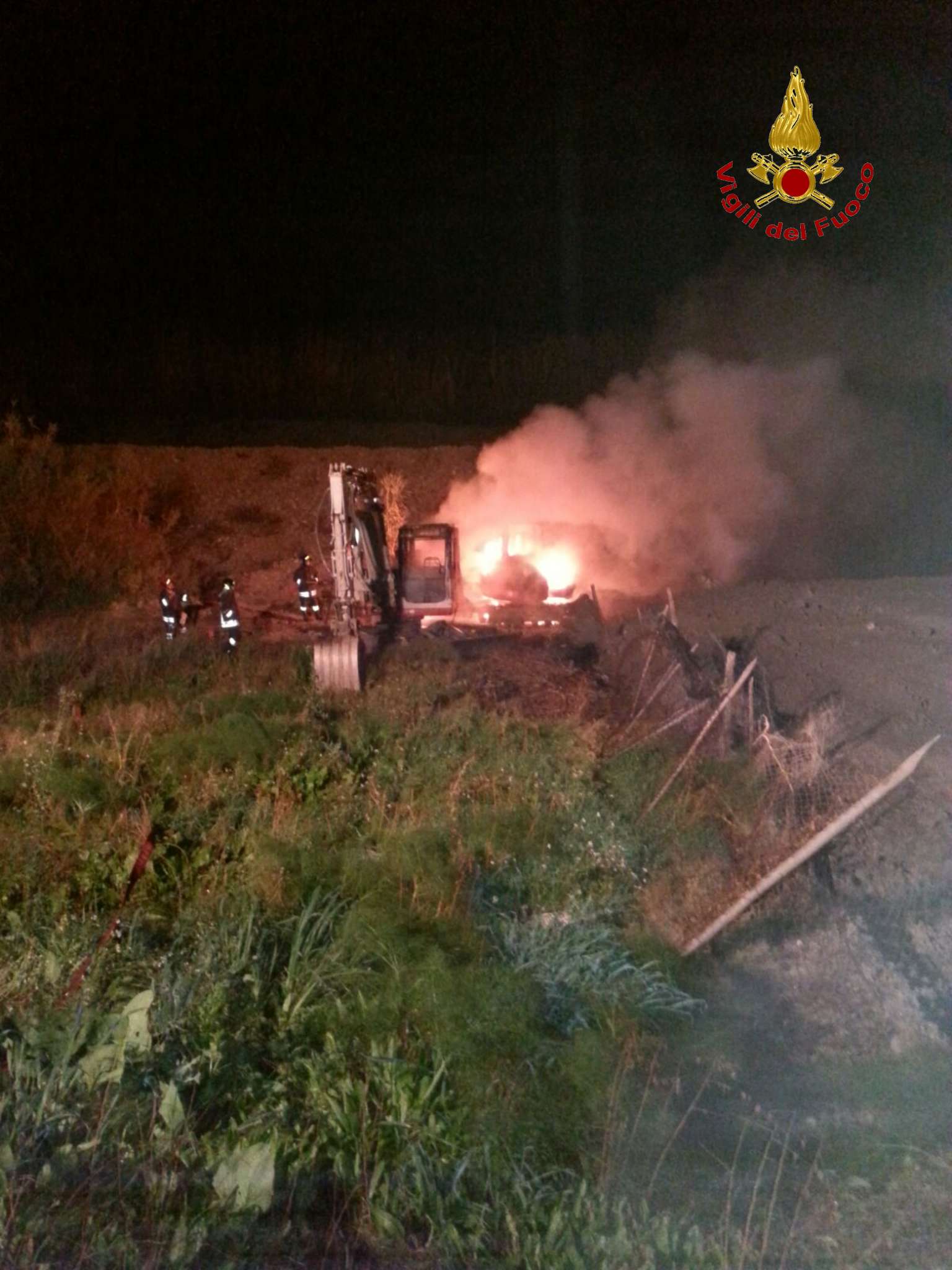 Ieri sera, 22 dicembre 2015, i vigili del fuoco del Comando Provinciale di Catanzaro sono intervenuti nel Comune di Cropani per lo spegnimento di un incendio che interessava due escavatori in sosta in una zona di campagna dove la ditta proprietaria stava facendo dei lavori.