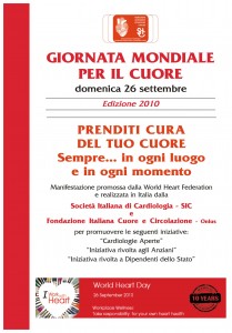 Sono stati più volte presi in considerazione tra i temi della Giornata: l’obesità, e come affrontarne la prevenzione, le scelte alimentari, l’attività fisica, il fumo. Il tema di quest’anno è la giusta prosecuzione del tema del 2009: la prevenzione della salute del cuore sul luogo di lavoro. Il richiamo è un richiamo forte e squillante al singolo individuo e alle aziende a fare il possibile per operare in senso preventivo nei confronti delle malattie cardiovascolari. L’individuo può e deve fare molto per la sua prevenzione, ma anche l’azienda deve essere al suo fianco in questo percorso non certo semplice ma duraturo.”