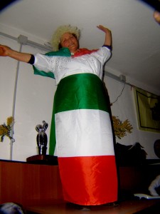 Tra una canzone e un ballo, all’improvviso, compare Signora Italia: una donna veste i colori – tre colori tre – della bandiera italiana. Un modo divertente per anticipare i festeggiamenti del 17 Marzo.