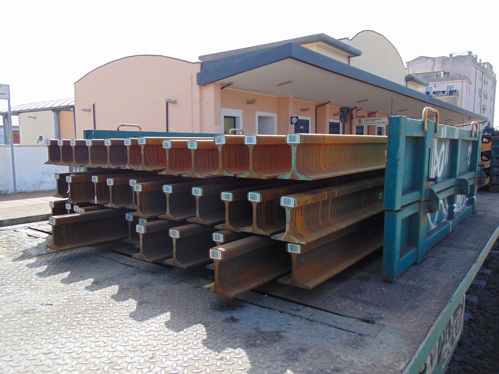 Le significative foto che pubblichiamo, si riferiscono al pesante convoglio composto da 3 sestine di carri pianale Uaeerrs destinati al trasporto di rotaie, che per alcuni giorni ha operato dalla stazione di Soverato in direzione sud. Nello specifico, la trazione del convoglio e lo scaricamento lungo la linea delle rotaie nuove da 60 kg/m per una lunghezza di 108 m ciascuna, è stato affidato all’Impresa Francesco Ventura di Paola; operante con due locomotori diesel. Una bellissima ex gruppo “61” originariamente appartenente alle ferrovie belghe SNCB costruita a metà anni ’60 dalla Cockerill; e la moderna 741-741-3 del 2016, di costruzione ceca “CZ-Loko”. Su ogni sestina di carri erano alloggiate 35 rotaie da 108 metri, che moltiplicate per tre sestine diventano quindi 105 barre da 108 metri; per un totale di ben 11.340 metri di rotaie depositate lungo linea e pronte per la messa in opera.