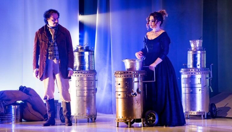 L’8 febbraio ore 21 presso al Teatro Comunale di Soverato (CZ), andrà in scena “Amori e sapori nelle cucine del Principe” di Roberto Cavosi, con Tosca D’Aquino e Giampiero Ingrassia, Giancarlo Ratti e Tommaso D’Alia, Rossella Pugliese e Francesco Godina, regia di Nadia Baldi. Nato da un’idea di Simona Celi, lo spettacolo è prodotto da La Contrada Teatro Stabile di Trieste e Ente Autonomo Regionale Teatro di Messina. Le scene sono di Luigi Ferrigno, i costumi di Carlo Poggioli, le musiche di Ivo Parlati.Amori e sapori nelle cucine del principe si dipana tra succulenti litigi, ricatti, ironia, sarcasmo e umorismo, attraverso lo scontro di Teresa e Monsù Gaston. Uno invidioso dell’altra, non si accontentano di gareggiare nel preparare i piatti migliori, ma vogliono avere anche l’esclusiva nelle attenzioni del principe.