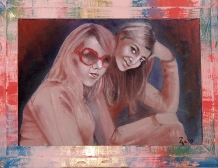 Tra i lavori presenti in mostra le opere su tela dipinte sul retro, una sorta di finestra dalla quale la Paci ci trasporta e ci mostra una realtà fatta da tanti personaggi che “espongono” le loro molteplici identità. Le tele, infatti, nel loro insieme diventano una sorta di mappa identitaria di una società che sempre più spesso non guarda le cose in modo diretto, ma osserva il mondo attraverso le tante finestre virtuali di windows. Il ritratto diviene per questa ragione un modo per creare una sorta di catalogazione di tanti personaggi per lo più adolescenti che ritroviamo nello sterminato archivio del social network –Facebook, divenuto mezzo preferito per la comunicazione per i ragazzi e per la Paci, mezzo d’osservazione privilegiato che gli permette di captare ed esporci un nuovo modo di percepire una realtà nuova della società contemporanea.