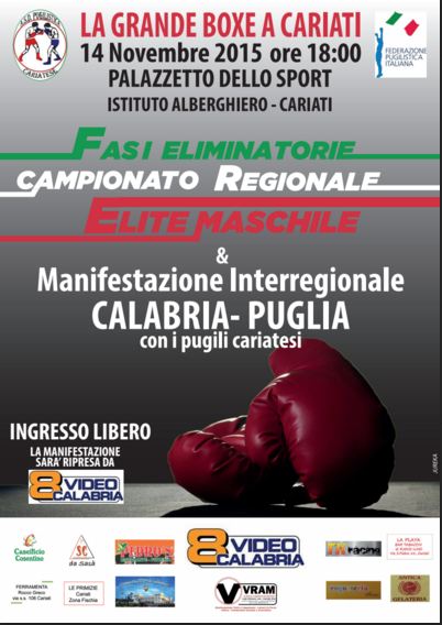 L’ASD Pugilistica Cariatese, ospita domani, al Palazzetto dello Sport dell’Istituto Alberghiero, a partire dalle 18, un raduno di boxe valido per il Campionato regionale assoluto ed Interregionale Calabria – Puglia.