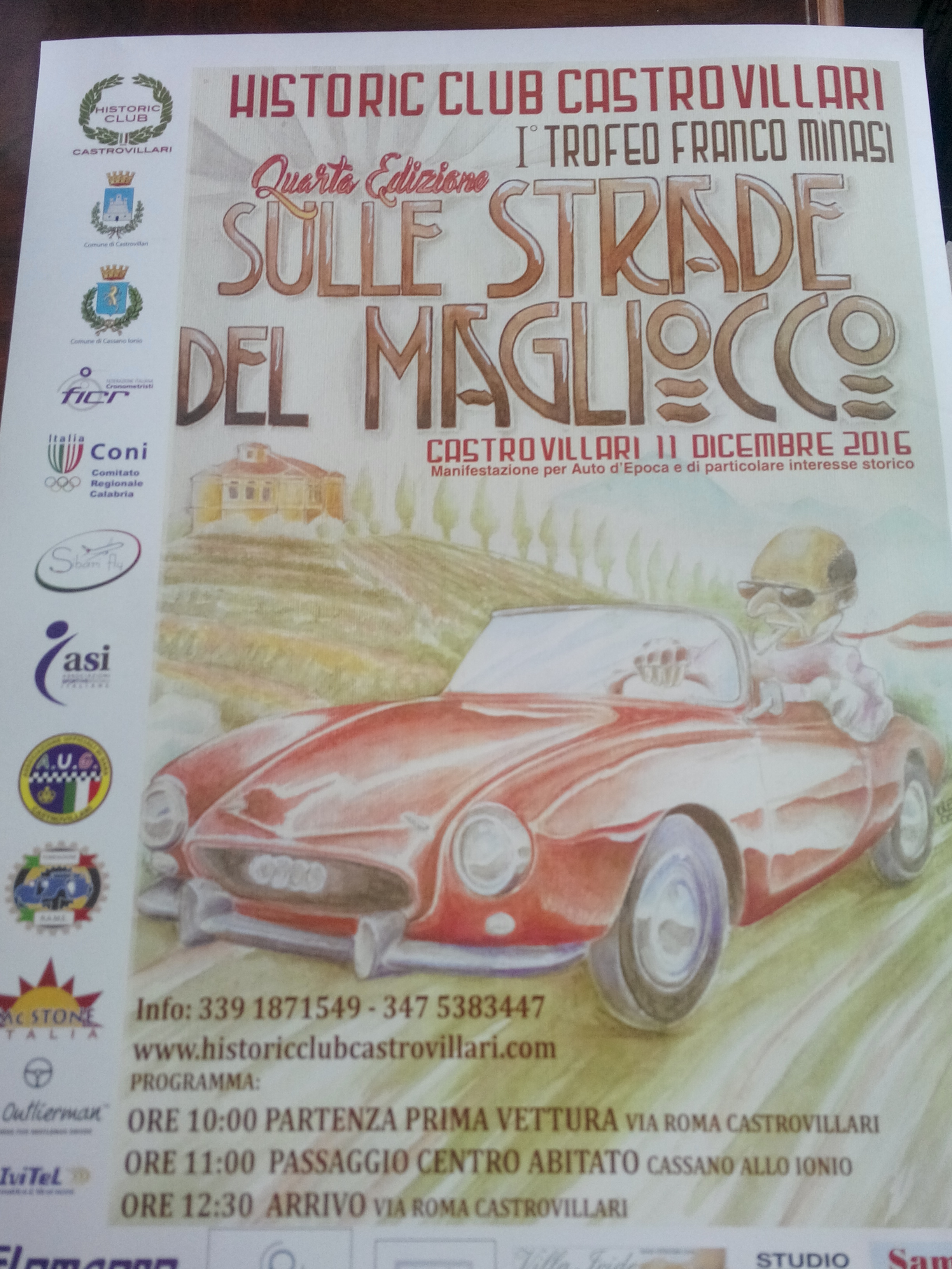 Domenica 11 dicembre si terrà a Castrovillari la gara di regolarità valida per il “Trofeo Franco Minasi”, a partire dalle ore 9:30.