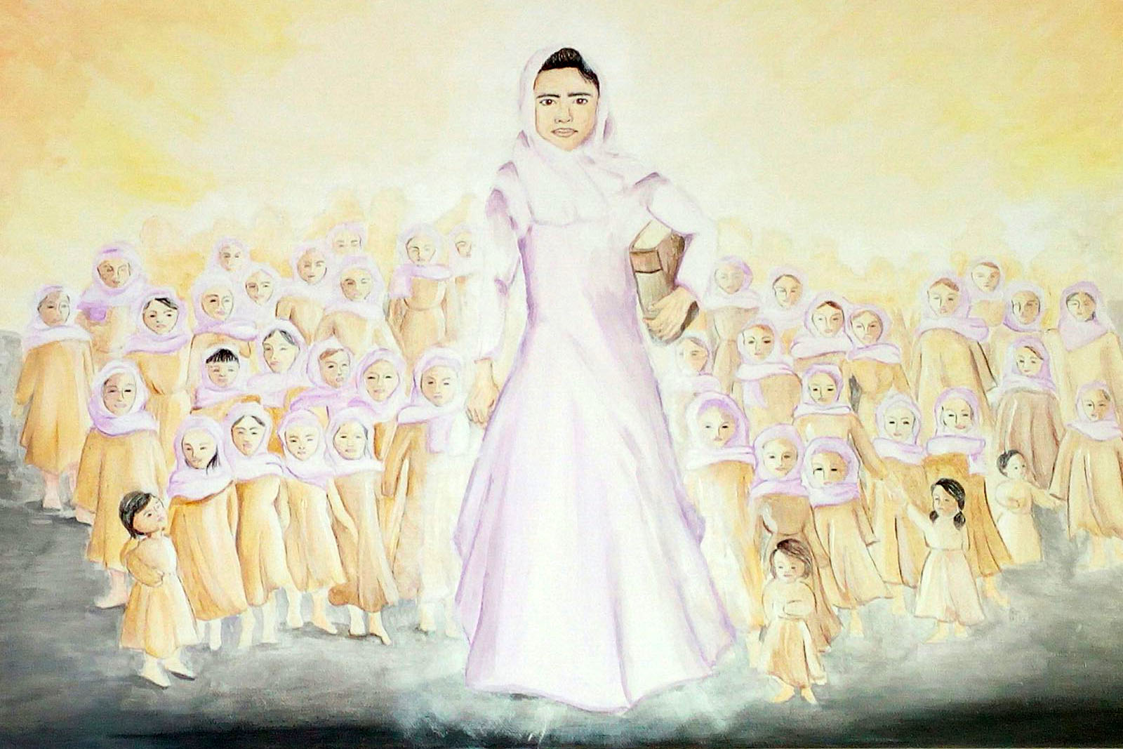 «Nel dipinto, – commenta l’autrice – considerata la notevole portata dell’impegno di Malala, mi è venuto spontaneo sproporzionare la sua figura, rispetto al resto della scenografia. Ho voluto, infatti, sottolineare la sua forza di volontà, la sua voglia di lottare e, soprattutto, il suo desiderio di vincere, condividendo pienamente il suo pensiero: “One child, one teacher and a pen can change the world” (Un bambino, un insegnante e una penna possono cambiare il mondo)».