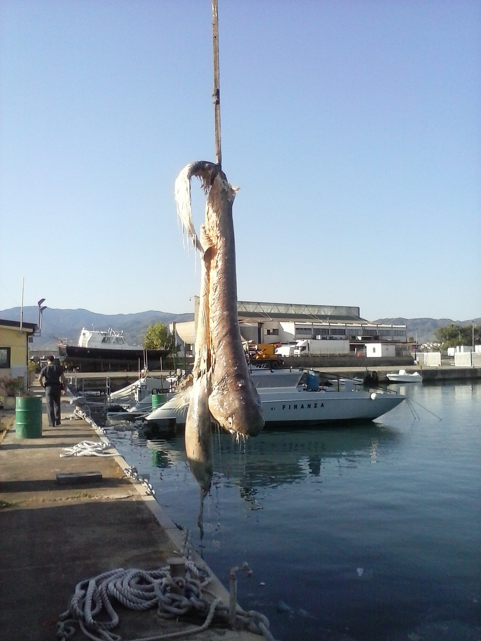 Per la rimozione della stessa è stato necessario l’intervento di una gru. Il personale della Sala Operativa di questa Autorità Marittima ha provveduto ad allertare il Comune di Corigliano Calabro che ha curato lo smaltimento dei resti dell’animale. Sul posto sono intervenuti anche i medici del servizio veterinario e l’Assessore all’ambiente del Comune di Corigliano Calabro. Trattasi di specie non pericolosa per l’uomo.
