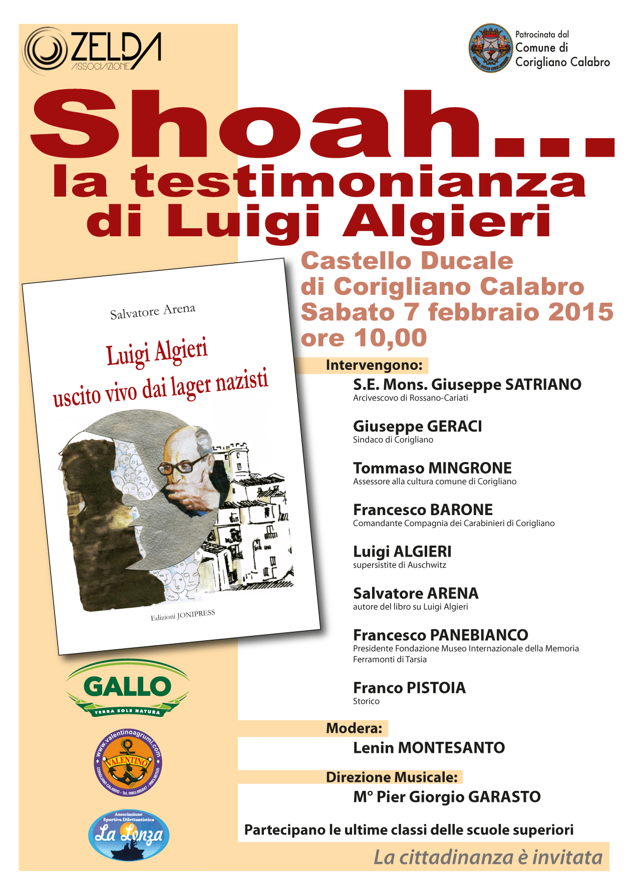 Riportare alla memoria delle nuove generazioni, il dramma della Shoah, acquisendo da un testimone sopravvissuto al campo di concentramento di Auschwitz e cittadino coriglianese una conoscenza concreta circa gli errori e le tragedie legate al nazismo e sviluppare una coscienza attiva su valori comuni europei. Generare nelle nuove generazioni, ma anche in quelle meno giovani, i valori della libertà, della pace, della democrazia, della diversità culturale, tolleranza e solidarietà tra i cittadini. È, questo, l’obiettivo dell’evento SHOAH..LA TESTIMONIANZA DI LUIGI ALGIERI, promosso dall’Associazione ZELDA che si terrà il prossimo SABATO 7 FEBBRAIO, alle ORE 10 presso il Castello Ducale.