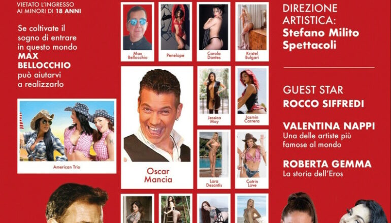 La locandina dell’evento illustra un elenco delle Pornostar più note al pubblico italiano e già all’onor delle cronache, che sono attese tra qualche settimana a Cosenza. Due sono i nomi di fama internazionale, che svettano nel settore: il noto regista e produttore italiano di cinema internazionali per adulti, il celebre Rocco Siffredi, che è l’ospite d’onore dell’edizione 2023, nonché la Star napoletana più amata dal pubblico d’Oltreoceano: Valentina Nappi.