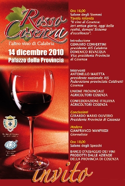 Ovviamente le conclusioni sono affidate al Presidente della Provincia, on Gerardo Mario Oliverio che ha dichiarato: “Con orgoglio anche questo 2010 vede la città di COSENZA tingersi di ROSSO per onorare la tradizione e la qualità del vino prodotto sul territorio provinciale. Una giornata intera votata alla degustazione, all’approfondimento tematico-culturale di un prodotto che non si può più definire soltanto un bene di consumo ma che ha tutte le proprietà e le potenzialità per diventare la realtà leader dell’alimentare in Calabria capace di trainare con eleganza l’economia locale.”