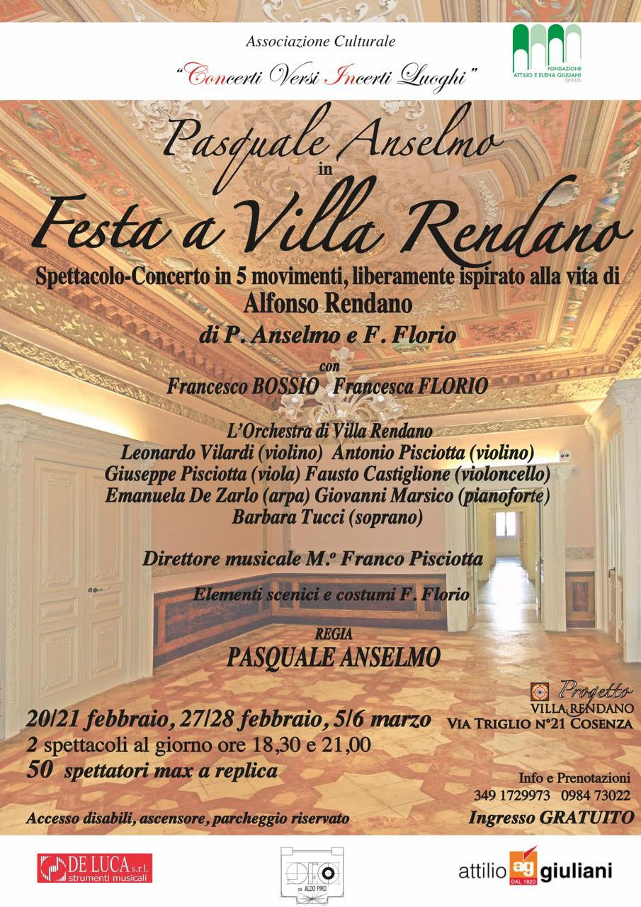 Il 20 e il 21 Febbraio alle 18.30 e alle 21.00, dopo uno studio durato mesi, debutta lo Spettacolo Concerto “Festa a Villa Rendano” dedicato alla figura inaspettatamente affascinante e rivoluzionaria di Alfonso Rendano.