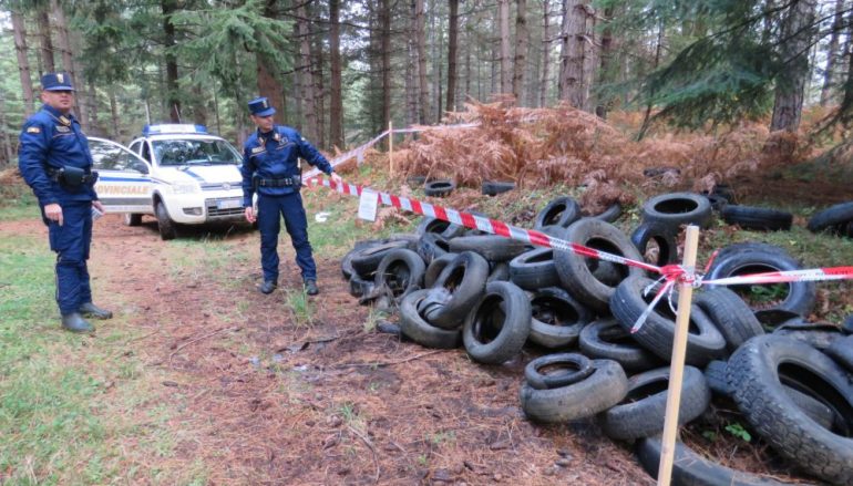 I poliziotti provinciali hanno constatato che la prima area era occupata da rifiuti ingombranti, solidi urbani vari, parti di motori di autoveicoli, materiale plastico, legnoso e cartaceo, parti di RAEE (rifiuti apparecchi elettrici ed elettronici), contenitori vuoti in metallo e plastica di vernici e olii sintetici, con evidente degrado del bosco; nella seconda area, distante circa un centinaio di metri dalla prima, sono state trovate abbandonate carcasse di pneumatici occultate tra i cespugli di ginestre e rovi al lato di un piazzale del bosco; ancora carcasse di pneumatici e rifiuti solidi urbani nella terza area, distante circa 200 m. dal secondo sito ma sempre nel medesimo comprensorio boscato e a lato di una stretta stradina in terra battuta.