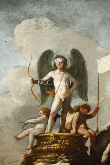 La tela, che documenta le forti influenze neovenete nell’attività di Mattia Preti intorno al quinto decennio del Seicento, propone un’eccellente trattazione del tema dell’Amor omnia vincit. La complessa struttura iconografica suggerita dal committente, l’abate Antonio degli Effetti, nobile erudito e collezionista d’arte della Roma barocca, mostra al centro della scena Cupido con occhi bendati mentre incede vittorioso sul carro trionfale, incurante delle conseguenze procurate dai suoi dardi nella circostante moltitudine di coppie sopraffatte dalla passione amorosa, un corteo sconfinato di personaggi biblici, mitologici, epici, di filosofi e letterati che testimonia la resa della ragione e della forza all’ineluttabile potere dell’amore.