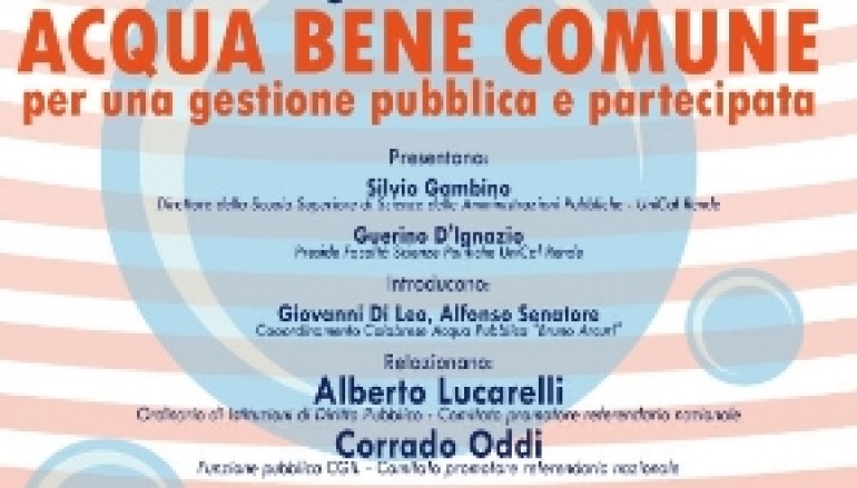 A pochi giorni dall’approvazione da parte della Consulta dei due quesiti referendari sull’acqua promossi dal Forum dei Movimenti per l’Acqua, il Coordinamento Calabrese Acqua Pubblica “Bruno Arcuri” ricorda l’appuntamento per fare il punto della situazione all’UNICAL (aula Caldora) mercoledì 19 gennaio ore 15.00 insieme a: