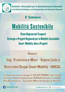 A relazionare saranno nella prima partea l’ing. Francesco Mari della Regione Calabria, stretto collaboratore dell’ass. Musmanno mentre nella seconda parte dell’incontro di domani un gruppo di ricercatori dell’Unical dappartenenti ai gruppi smart mobility interverrà sul piano regionale dei trasporti e sui progetti di mobilità sostenibile, obiettivi di alcuni progetti PON sui trasporti già approvati e finanziati e la loro applicabilità sul nostro territorio.