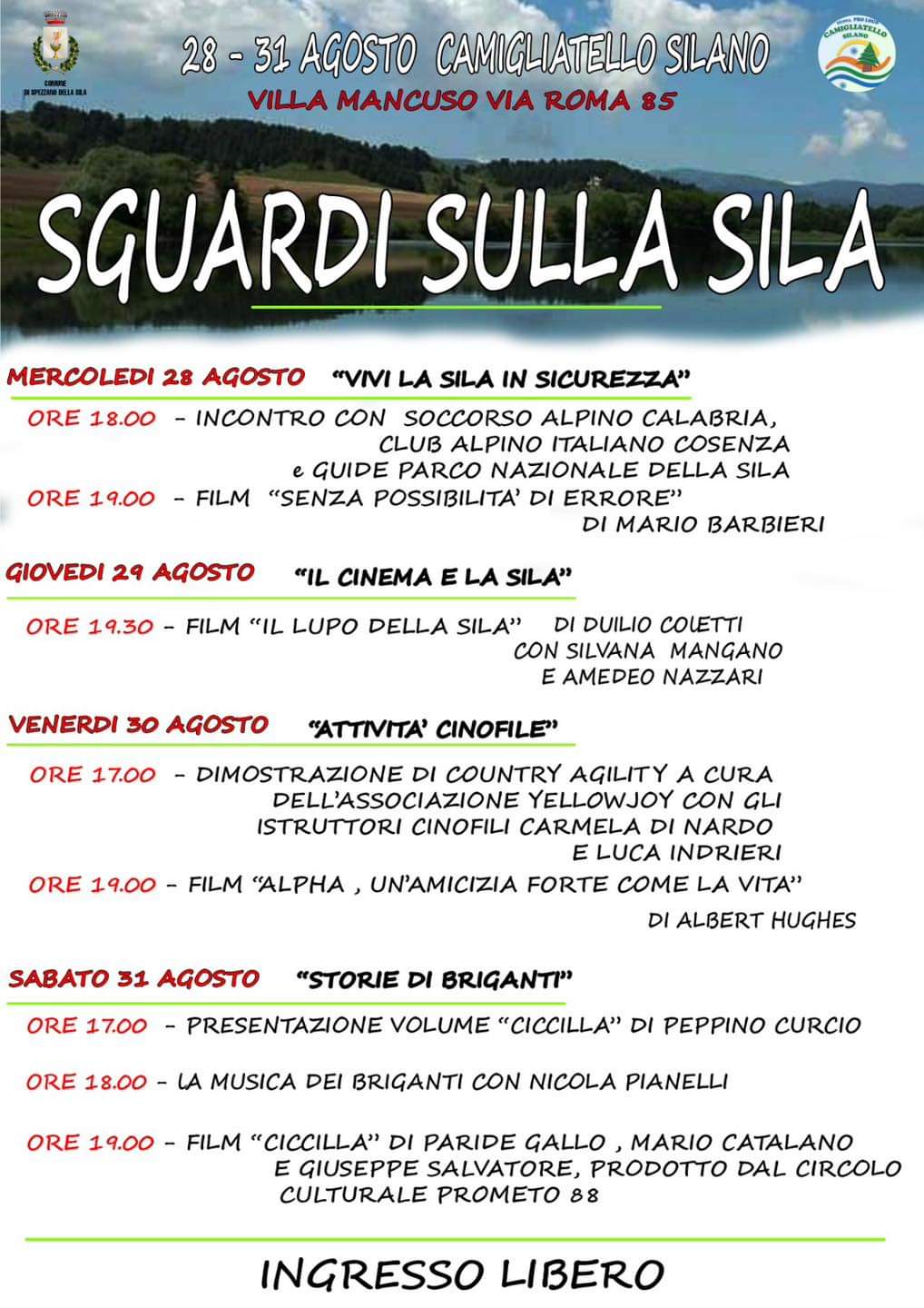 Dal 28 al 31 agosto 2024, Villa Mancuso a Camigliatello Silano ospiterà “Sguardi sulla Sila”, una serie di eventi dedicati alla cultura, al cinema e alle tradizioni locali, immersi nella bellezza dei pini di Via Roma.