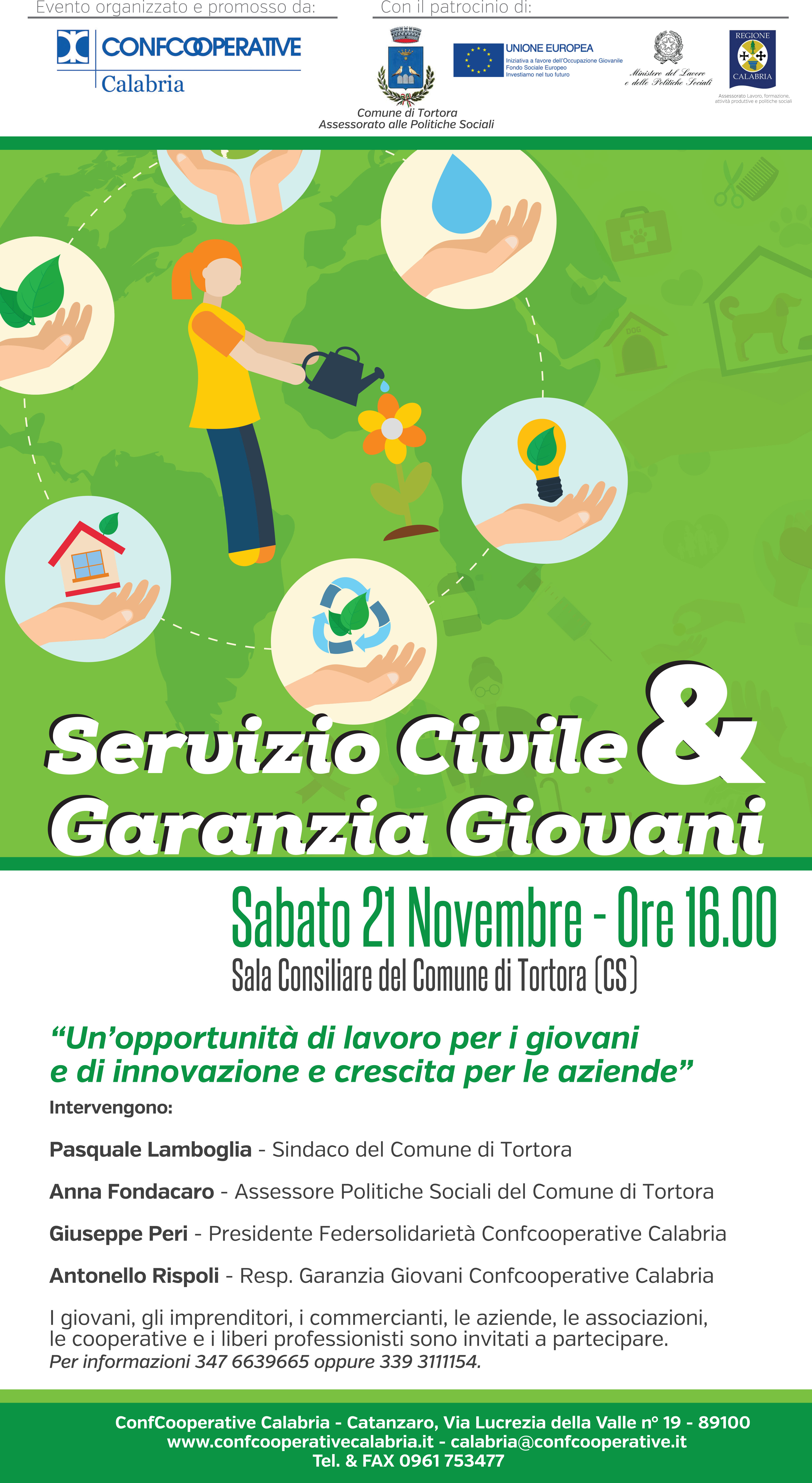 Sabato 21 Novembre, alle ore 16, si terrà l’incontro informativo “Servizio Civile e Garanzia Giovani” presso la sala consiliare del Comune di Tortora, in provincia di Cosenza.