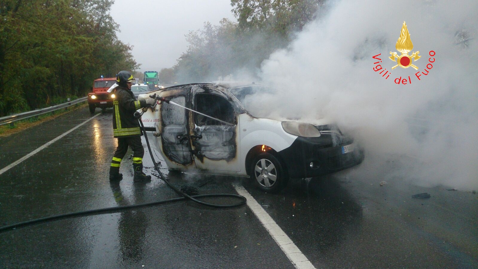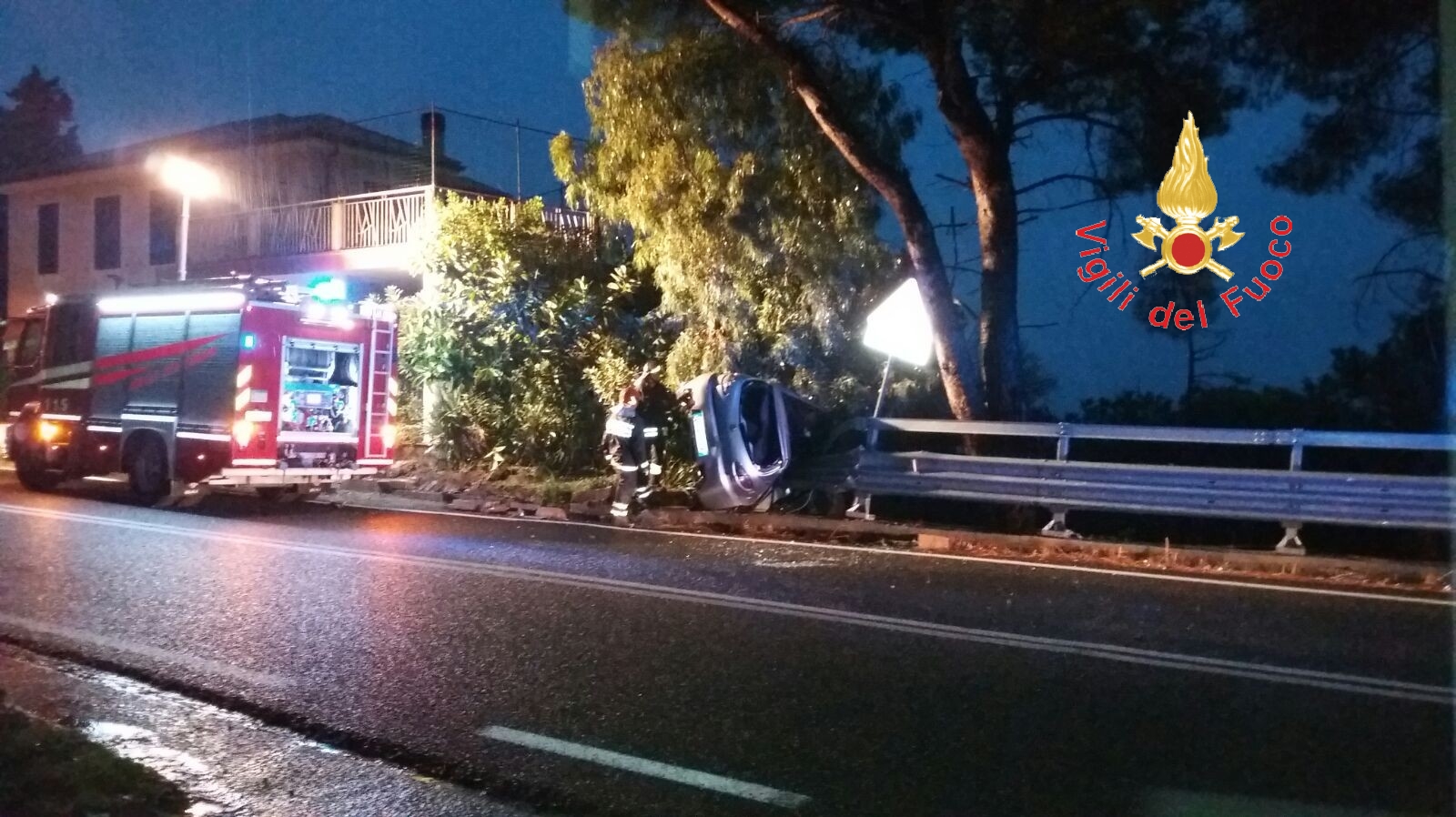 Importante l’intervento dei Vigili del Fuoco che mettevano in sicurezza la vettura in attesa del soccorso stradale.