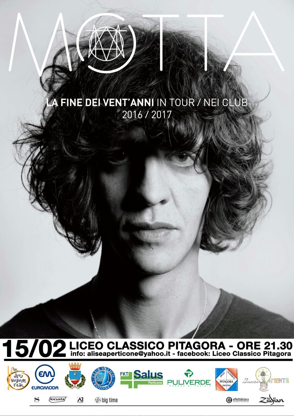 Il Liceo Classico “Pitagora”di Crotone sarà una tappa del tour nazionale di Francesco Motta, giovane cantautore livornese che nel 2016 si è aggiudicato, con il suo album “La fine dei vent’anni”, la targa all’opera prima del prestigioso Premio Tenco. «Dal vivo – spiega Motta – siamo molto più psichedelici che su disco, forse più vicini all’idea di suono che avevamo originariamente. I brani diventano dei mantra dove perdersi».
