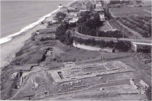 Chiunque percorra la SS106 verso Taranto, superato il centro di Monasterace Marina, non può far a meno di notare le rovine antistanti il faro di Punta Stilo. I ruderi affioranti sulla spiaggia sono spesso ricoperti di arbusti e sterpaglie. Si distinguono solamente gli agglomerati maggiori di massi, che descrivono due rettangoli perpendicolari. I più curiosi, qualche turista e gli appassionati di antichità proveranno a percorrere, con un po’ di attenzione, la scaletta nascosta dalle acacie, che dalla statale porta giù all’area archeologica, per trovare quale baluardo all’incuria, alcuni pannelli esplicativi, con una breve descrizione dei “ruderi”.