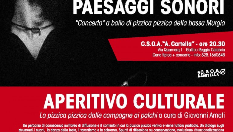 Si parte il 18 Febbraio presso la nuova libreria fonoteca Radici del Suono in via Pio XI dir. Priv.33 a Reggio Calabria con un incontro culturale con Gianni Amati, presidente dell’Associazione “Paesaggi Sonori”, da anni impegnato nella ricerca sul campo nell’ambito della musica e della danza tradizionale pugliese e collaboratore dell’Archivio Sonoro della Puglia. A seguire “Concerto a ballo” di Pizzica Pizzica della Murgia meridionale, presso il C.S.O.A. Cartella di Gallico (RC).