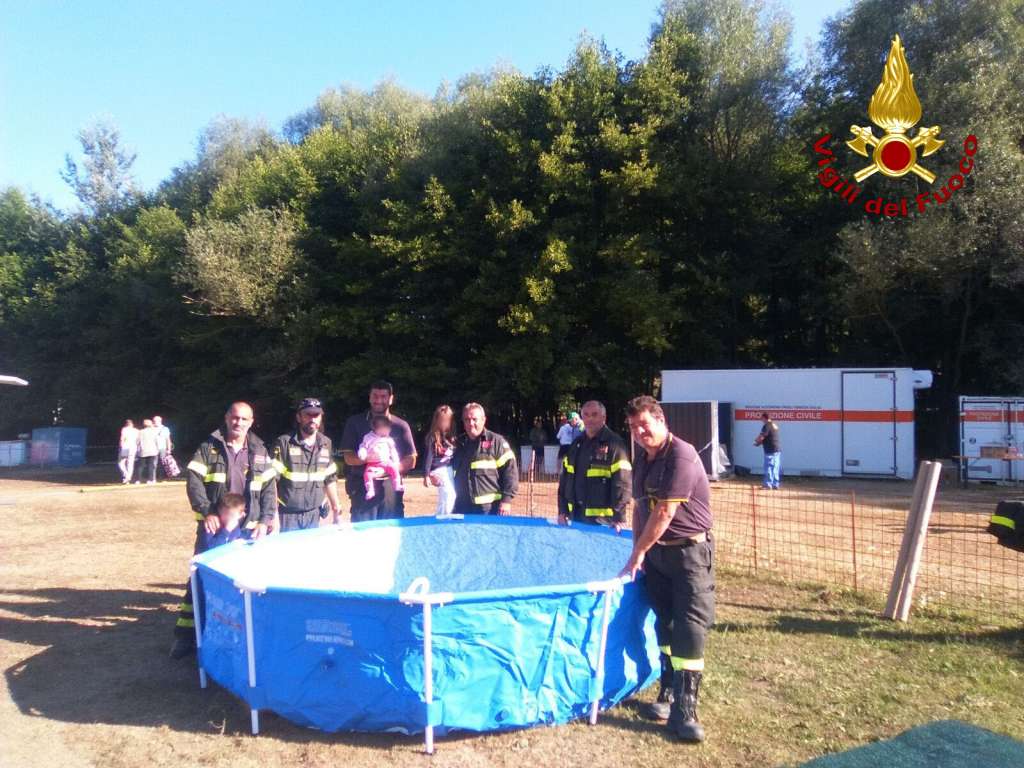 Al loro risveglio i piccoli hanno scoperto una piscina, donata dai Vigili del Fuoco.