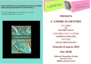 Lamezia Terme, 23.3.2023 – Sarà presentato domani, 24 marzo 2023 alle ore 18 alla Libreria Tavella di Lamezia Terme l’ultima opera dello scrittore lametino Mauro Vasta dal titolo “L’amore da dentro”.