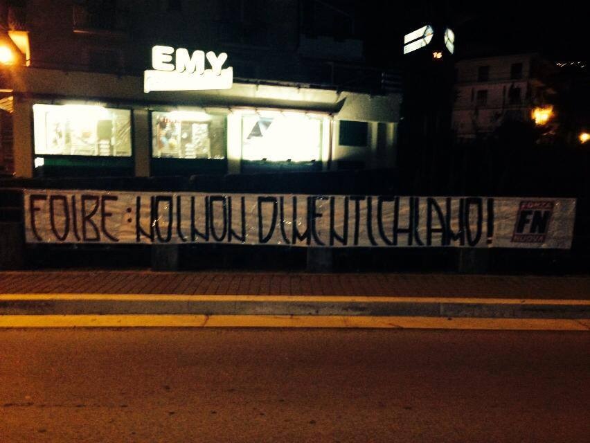 Per il giorno della memoria delle vittime delle foibe i militanti forzanovisti lametini hanno attaccato uno striscione in città zona Lamezia-ovest con la scritta:”Foibe: “noi non dimentichiamo”.