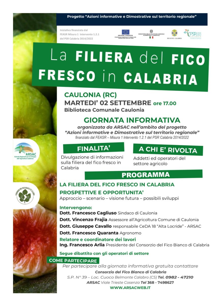 L’Arsac, il cui direttore generale è la dottoressa Fulvia Michela Caligiuri (nella foto di copertina), in collaborazione con il Comune di Caulonia, guidato dal sindaco Francesco Cagliuso, ha organizzato, per martedì 2 settembre, alle ore 17:00, presso la biblioteca comunale di Caulonia Marina, una interessante giornata informativa sul fico, nell’ambito del progetto “Azioni formative e formative” finanziato dal FEASR – misura 1 intervento 1.2.1 del PSR Calabria 2014 – 2022.