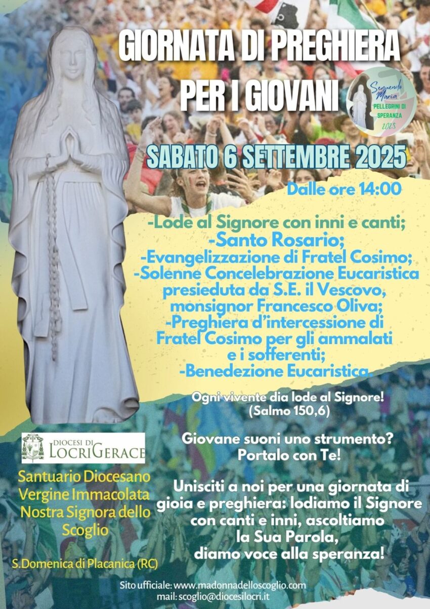Sarà un momento di fede e di condivisione fraterna presso il santuario giubilare, dove sarà anche possibile ottenere l’indulgenza plenaria. L’incontro inizierà con un concerto di lode, con inni e canti al Signore, per proseguire con l’evangelizzazione di Fratel Cosimo, la solenne concelebrazione eucaristica presieduta dal vescovo della diocesi di Locri Gerace, monsignor Francesco Oliva e dalla preghiera di intercessione di Fratel Cosimo, per la guarigione dei malati e dei sofferenti. E’ stato proprio Fratel Cosimo, che già dal 2006, ha chiesto che, ogni primo sabato di settembre, presso il Santuario N.S. dello Scoglio venisse dedicata una giornata speciale di preghiera e di incontro, durante la quale, i giovani, potessero vivere momenti di comunione pregando, condividendo esperienze e riflessioni, ma anche rafforzando la fede attraverso la meditazione della Parola di Dio. Cosi, da anni, giovani ma, anche, pellegrini d’ogni età, provenienti dalle varie regioni italiane e nazioni estere, si ritrovano, con il vescovo, i sacerdoti e Fratel Cosimo, per pregare e lodare il Signore. Innumerevoli le persone che si riconciliano con il Signore, in queste giornate, attraverso la confessione. Da evidenziare che, tra i frutti dell’Opera fondata da Fratel Cosimo e del suo instancabile impegno nel servizio di annuncio del Vangelo e di ‘ascolto’ delle umane fragilità e sofferenze, riconosciuti ufficialmente dalla Santa Sede con decreto del 5 luglio 2024 dal Dicastero della Dottrina della Fede, con l’approvazione di Papa Francesco, ci sono quelli legati al risveglio spirituale e alla conversione di tantissimi giovani. Attraverso le esortazioni di fratel Cosimo, infatti, in molti hanno scelto di accogliere nel proprio cuore Gesù Cristo, Salvatore e Signore e di realizzare un progetto di vita diventando portatori di gioia e lievito di speranza in un mondo sempre più scristianizzato e che ha perso il senso del peccato.