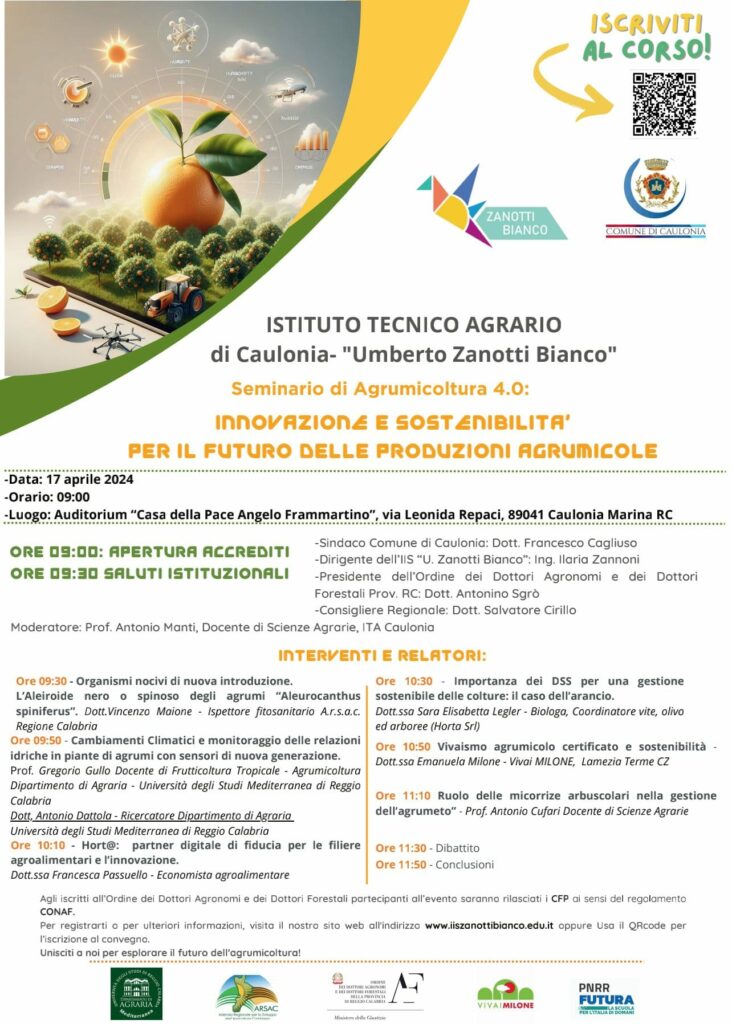 Ai partecipanti iscritti all’Ordine dei Dottori Agronomi e dei Dottori Forestali saranno rilasciati i CFP ai sensi del regolamento CONAF. L’evento rappresenta un’importante occasione per condividere conoscenze ed esperienze nel settore agrumicolo.