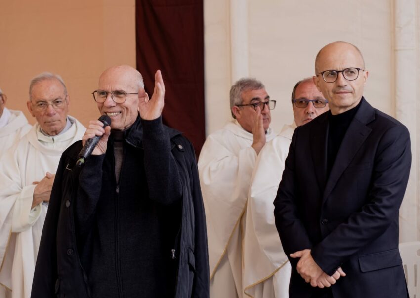 “Dell’amore del Signore è piena la terra (Sal 32,5-6)”. Lo è anche questo luogo benedetto dal dono della misericordia e del perdono offerto a coloro che vengono qui con i loro carichi di sofferenza, di delusione e persino con i loro fallimenti, per implorare guarigione e salvezza. Lo Scoglio è un luogo di grazia che Dio ha voluto affidare alla protezione della beata Vergine Maria. Lo è stato di fatto per lungo tempo e lo è oggi con il nulla osta della Santa sede. Con decreto del 5 luglio 2024 del Dicastero per la Dottrina della Fede, approvato personalmente da papa Francesco, ha ricevuto l’approvazione della Chiesa, che ha riconosciuto il valore spirituale e pastorale dell’esperienza mariana dello Scoglio. Si è riconosciuto nell’esperienza mariana dello Scoglio la presenza di tanti frutti spirituali, di segni di grazia e di conversione, che ci sono stati e che ancora si verificano. A vivere l’esperienza mariana dello Scoglio è stato fratel Cosimo, che da giovane ha saputo accogliere la l’azione dello Spirito nella povertà della sua vita. Possiamo ben dire che laddove c’è povertà e umiltà, laddove il silenzio regge al chiasso ed ai rumori dei nostri tempi, Dio ama manifestarsi. La storia la conosciamo. E la narrazione fatta da Fratel Cosimo vale come testimonianza di fede mariana per tutti noi che in questo luogo continueremo a vedere la presenza e l’azione dello Spirito Santo. Dalla testimonianza di Fratel Cosimo abbiamo compreso quanto essa valga anche per noi, conserva una grande attualità, ma esige la nostra collaborazione: “Non aver paura, vengo dal Paradiso, io sono la Vergine Immacolata, la Madre del figlio di Dio; sono venuta a chiederti di costruire qui una cappella in mio onore. Io ho scelto questo luogo, qui voglio stabilire la mia dimora e desidero che da ogni paese si venga qui a pregare”. Cosimo era alla ricerca della sua vocazione e della volontà di Dio, quando chiede aiuto alla Madonna: “Vergine Santa, ditemi cosa volete che io faccia? La risposta fu l’affidamento di una missione:“Ti chiedo il favore di trasformare questa valle; qui desidero un grande centro di spiritualità, dove le anime troveranno pace e ristoro. In questo luogo Dio vuole aprire una finestra verso il cielo; qui per la mia mediazione vuole manifestare la sua misericordia”. È una missione alla quale fratel Cosimo consacrerà la sua vita e che guarda a un mondo, che non si chiude alle realtà del cielo. Il nostro mondo si chiude alle realtà del cielo, quando considera “Gesù una persona totalmente priva d’importanza, al massimo un personaggio curioso, che può suscitare meraviglia con il suo modo insolito di parlare e di agire. E così, quando la sua presenza diventerà fastidiosa per le istanze di onestà e le esigenze morali che richiama, questo “mondo” non esiterà a respingerlo e a eliminarlo”. Il nostro mondo si chiude alle realtà del cielo, quando considera la fede cristiana fuori dai suoi interessi, “una cosa assurda, per persone deboli e poco intelligenti; un mondo in cui ad essa si preferiscono altre sicurezze, come la tecnologia, il denaro, il successo, il potere, il piacere”. Il nostro mondo si chiude alle realtà del cielo, quando in esso “non è facile testimoniare e annunciare il Vangelo e dove chi crede è deriso, osteggiato, disprezzato, o al massimo sopportato e compatito”. Il nostro mondo si chiude alle realtà del cielo, quando “Gesù, pur apprezzato come uomo, è ridotto solamente a una specie di leader carismatico o di superuomo”, finendo così col vivere un ateismo di fatto. Lo afferma papa Leone XIV, nella sua prima omelia durante la messa celebrata con i cardinali dopo la sua elezione. Il mondo oggi sembra aver perso il desiderio di una vita nuova, sembra non credere più nelle possibilità di una pace vera. Ha grandemente bisogno di rinnovamento e di una profonda conversione interiore. È quello che chiediamo al Signore. È quello che fratel Cosimo ha avvertito nel suo cuore nell’incontro con Maria: “Se gli uomini si convertiranno, si pentiranno dei loro peccati, si confesseranno, si avvicineranno a Dio e lo ameranno con tutto il cuore, Dio si avvicinerà a loro e li accoglierà nella sua casa….” Il mondo che si apre allo sguardo di Maria accetta la consegna più importante da Lei fatta a Fratel Cosimo: “Ecco il mio rosario, esso sia la tua preghiera quotidiana, offrilo al mio cuore immacolato per la conversione del mondo, il trionfo del regno di Dio, la pace delle nazioni e la salvezza dell’umanità. Non si tratta di una missione da nulla. Essa coinvolge l’esistenza di Fratel Cosimo, ma anche la nostra e di quanti sono fedeli devoti dello Scoglio. Anche qui allo Scoglio, tenendo presente la Parola che abbiamo ascoltato, possiamo imparare ad ascoltare la voce del pastore, ad amarlo ed a seguirlo. Qui ci sentiamo popolo di un Dio che ci ama e ci chiama alla conversione. Rispettando i nostri ritmi e accogliendoci sempre nel suo grande abbraccio ricco di misericordia e benevolenza. Qui ci sentiamo nelle mani del Figlio e nelle mani del Padre. Il brano del vangelo di Giovanni che ci è stato proposto si concentra sull’immagine delle mani: “Nessuno le strapperà dalla mia mano”; “Nessuno può strapparle dalla mano del Padre”; “Io e il Padre siamo una cosa sola”. Essere nelle mani di Cristo significa essere al sicuro, sotto la custodia di un amore che salva. Noi ci affidiamo a Lui, che per primo si è affidato al Padre e si è donato a noi. È un amore che circola, che ci coinvolge, che ci abbraccia: il Figlio è nelle mani del Padre, e noi siamo nelle mani del Figlio. E in queste mani, nulla va perduto. Credi tu questo? Da questo nasce una speranza nuova: la fede alimenta la speranza. Qui allo Scoglio possiamo vivere un’esperienza di fede che ci insegna a guardare Maria più da vicino, ad avvertirne la presenza e accogliere il suo incoraggiamento, a seguire suo Figlio. Anche quando le pro