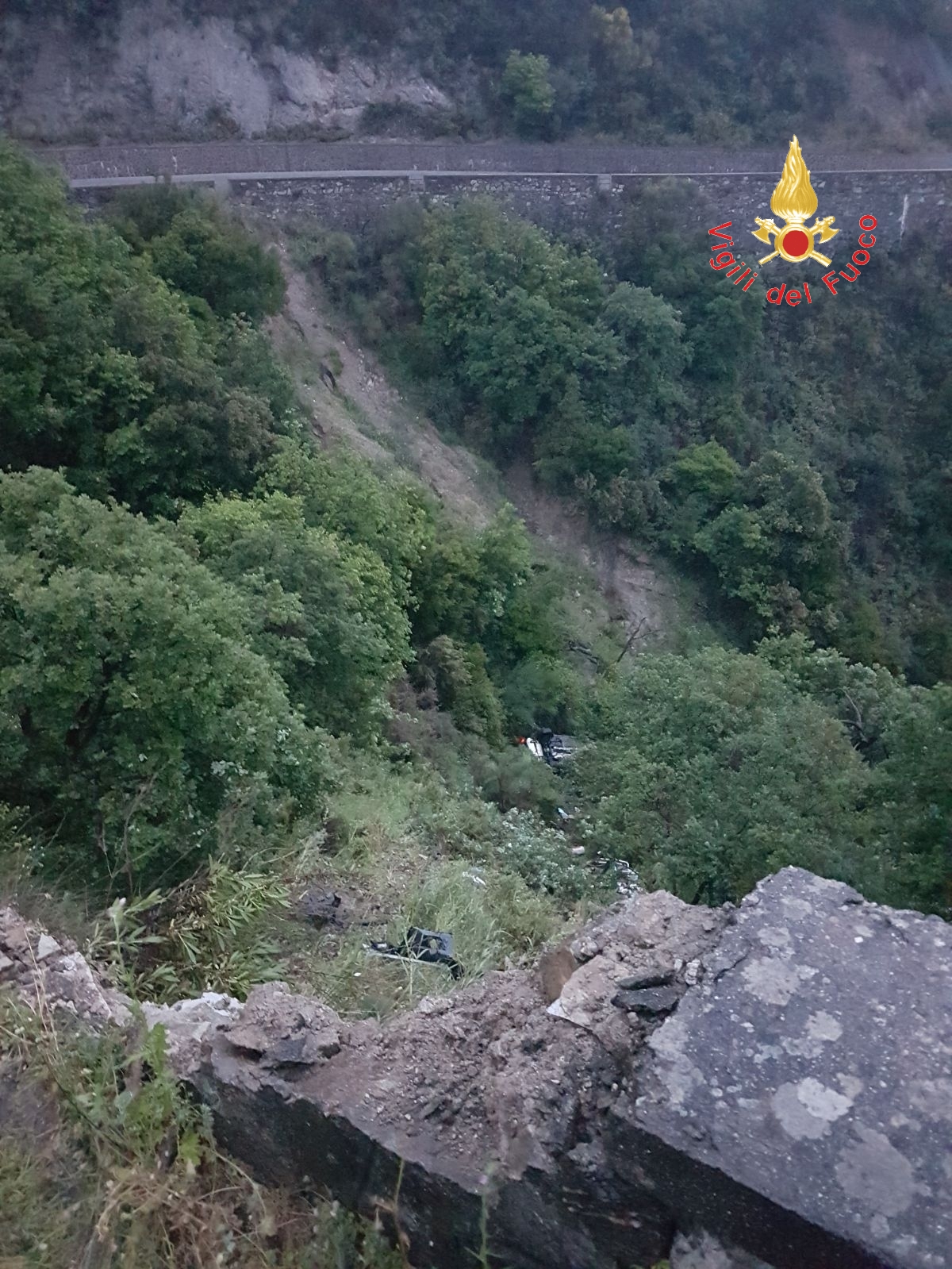 Una vettura Ford Kuga per cause in corso di accertamento, perde il controllo, esce fuori strada e abbatte il muretto di delimitazione della carreggiata. Il veicolo termina la sua corsa in una scarpata di circa sessanta metri di altezza e infine si ribalta.