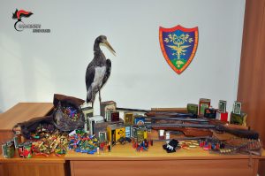 Tutto il materiale è stato posto sotto sequestro, in attesa delle determinazioni dell’Autorità Giudiziaria, mentre L.S., che è stato deferito all’Autorità Giudiziaria in stato di libertà, dovrà rispondere di reati relativi alla normativa sulle armi e sulla detenzione di fauna particolarmente protetta.