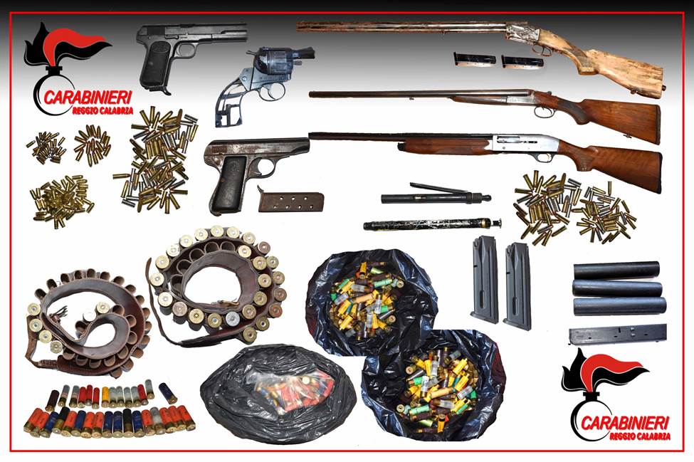 Nel corso di un servizio straordinario di controllo del territorio svolto dalle prime luci dell’alba di ieri in località “Villaggio Arghillà Nord”, i Carabinieri della Compagnia di Reggio Calabria , supportati da due unità cinofile del Gruppo Operativo Calabria di Vibo Valentia nonché dagli specialisti dello Squadrone Eliportato Cacciatori di Calabria, hanno rinvenuto, all’interno di un alloggio popolare – disabitato, ma munito di porta blindata – le seguenti armi e munizioni, accortamente custodite in zaini e buste di plastica: