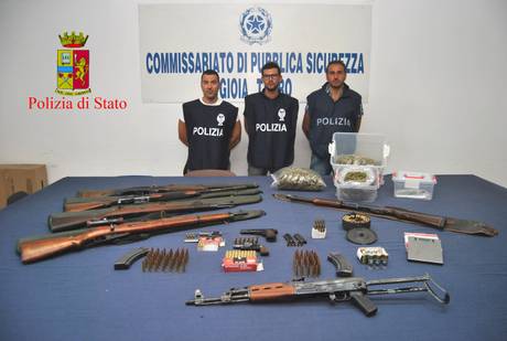 Un arsenale composto da pistole e fucili, tra i quali Kalashnikov, moschetti con sistemi di precisione e fucili a pompa, è stato trovato dagli agenti del Commissariato di Gioia Tauro che hanno arrestato due persone, Salvatore Caratozzolo, 52 anni, operaio portuale già noto alle forze dell’ordine, e il figlio Gaetano (23). In una casa abbandonata nella loro disponibilità sono stati trovati 6 fucili, 3 pistole, munizioni e anche 2 chilogrammi di marijuana.