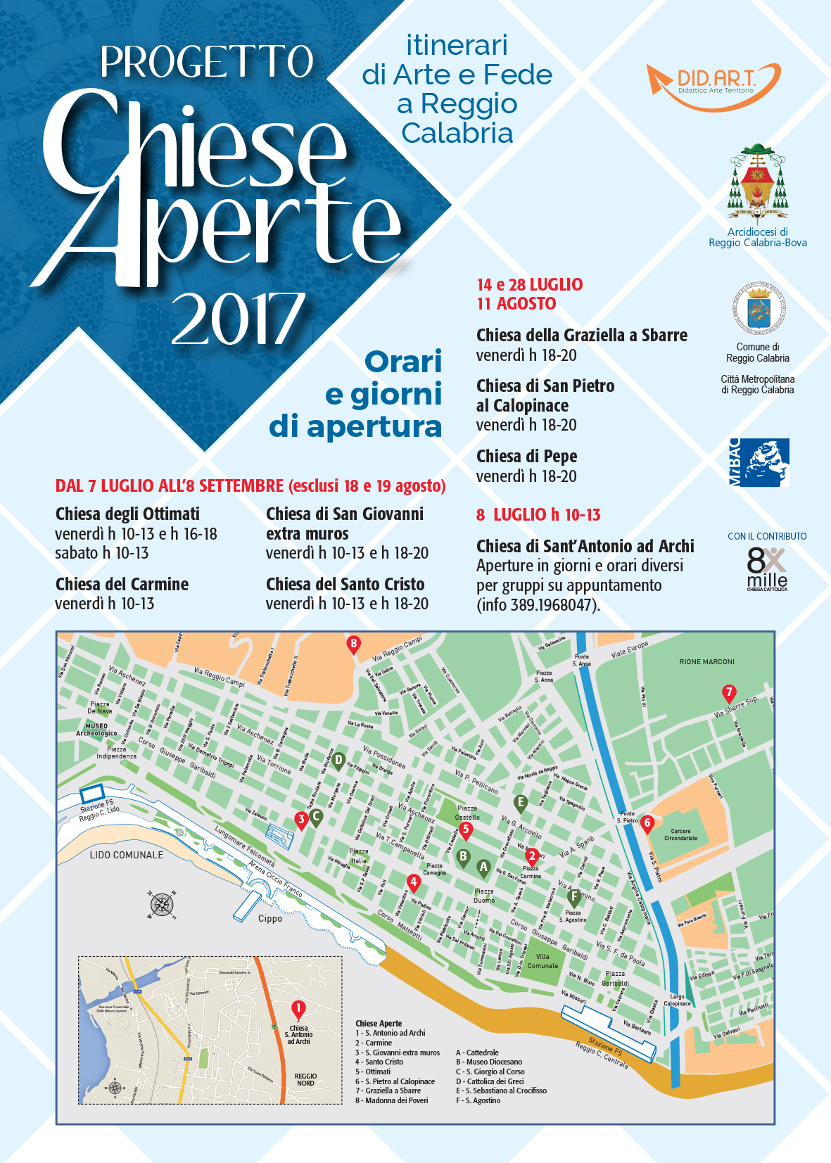 Il Progetto Chiese aperte 2017 si avvale del patrocinio del Comune e della Città metropolitana di Reggio Calabria e del Ministero per i Beni Ambientali, Culturali e Paesaggistici.