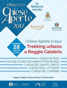 Venerdì 28 luglio, per il secondo anno consecutivo, l’Associazione Did.Ar.T. Didattica Arte Territorio e il Touring Club Italiano Club di territorio di Reggio Calabria promuovono il Trekking urbano Chiese Aperte in tour.