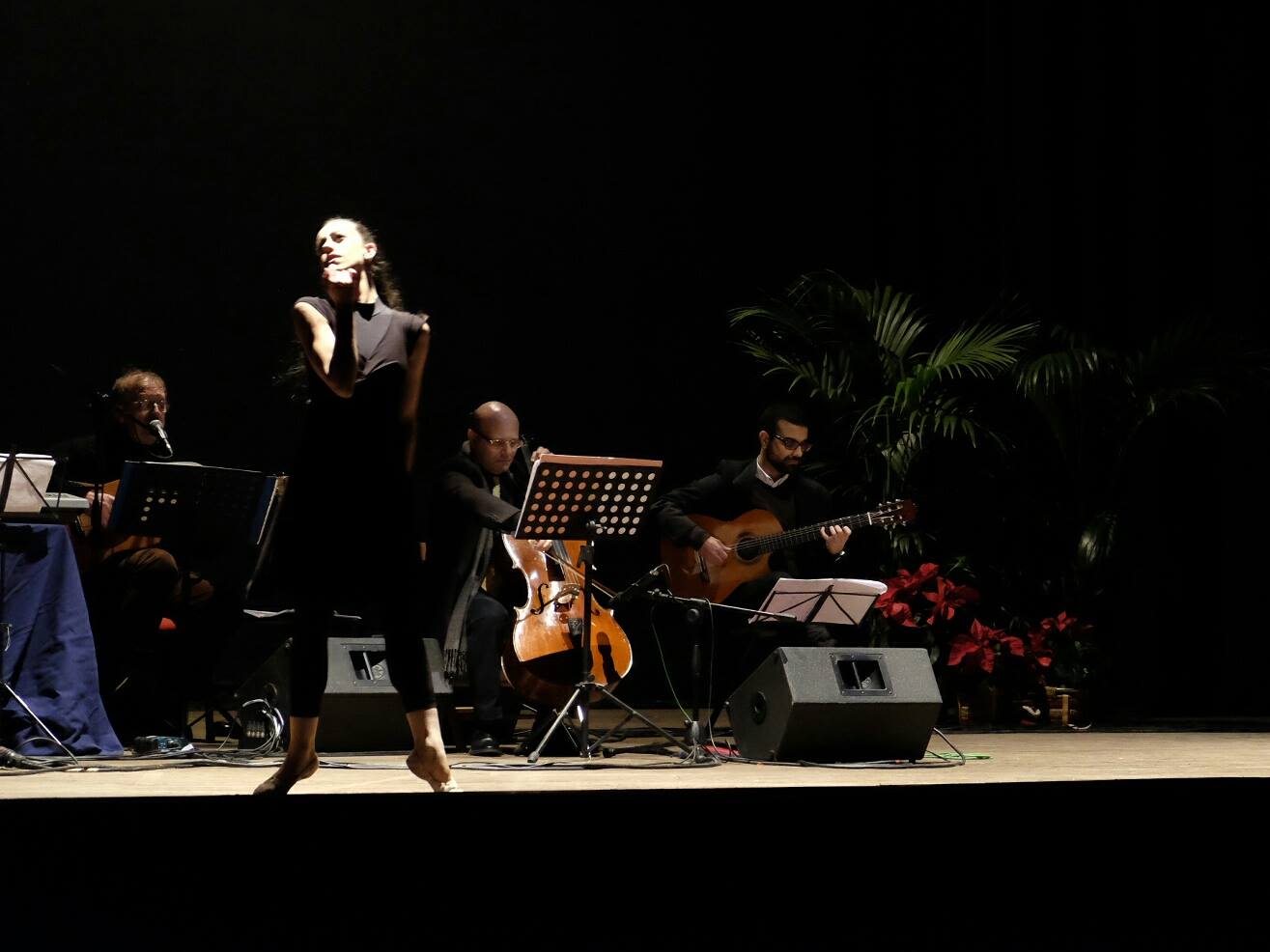Brani che hanno testimoniato come nel tempo e attraverso le culture, la storia delle donne si sia presentata sempre con la forza di una scelta di autodeterminazione ed identitaria, tra ragione e sentimento, coraggio e passioni, ma anche come sia unica nel suo sapersi differente rispetto alla necessità di rivendicare stereotipi lessicali, sostanziali e di discriminazione civile quanto umana. Un dialogo con il pubblico attraverso monologhi ed interventi di testi importanti come quelli di De Filippo, D. Maraini, R. Korth ma anche la storia della “cortigiana” Veronica Franco, che si difese da sola dal patibolo dell’inquisizione opponendosi ad una società già misogina e bigotta, nel ‘500, e che con le sue lettere ed i suoi scritti rivendicava la dignità di qualsiasi persona, perfino di chi vende il proprio corpo. Sono stati momenti di seria e ricercata riflessione divenuti poetici e trascinanti anche grazie alle coreografie della ballerina Fatima Ranieri, inseguita sul palco dalle musiche del gruppo di Nanni Barbaro e dalle luci e dai suoni di Mario Arena.