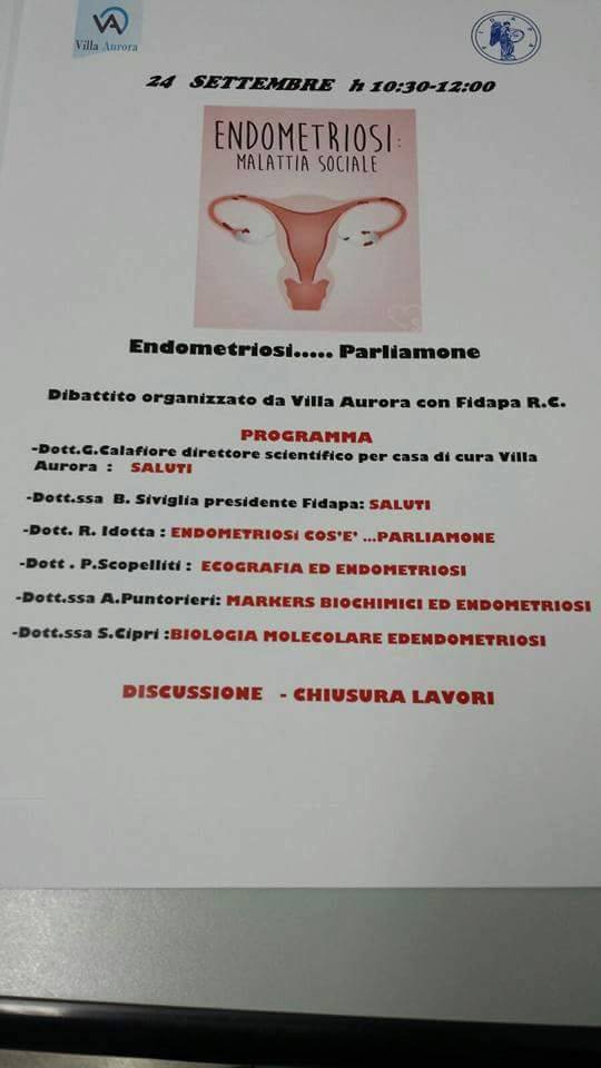 La Fidapa di Reggio Calabria e “Villa Aurora” organizzano, per giorno 24 settembre, un dibattito sull’endometriosi.