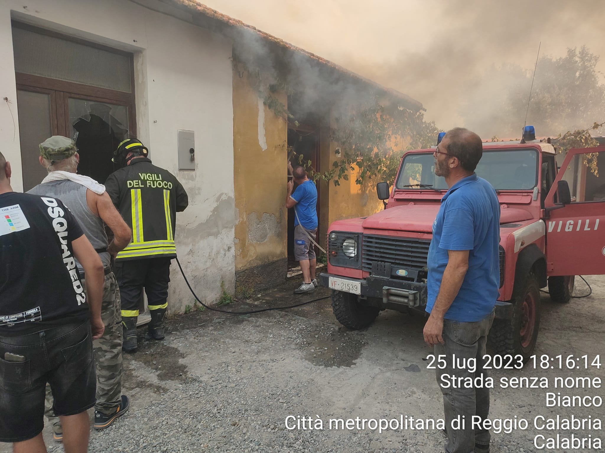 A Pardesca Frazione di Bianco (RC) le fiamme partite da contrada “Grazia” in poco tempo ha distrutto divorando ettari di uliveti riuscendo a penetrare per il forte vento nel centro abitato in “Via baraccamenti” dove insistono una serie di alloggi popolari.
